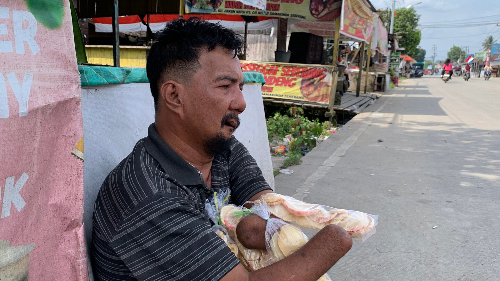 Setiap kerupuk yang ia bawa bukan sekadar dagangan — itu harapan buat keluarganya bisa makan hari itu. Meski seringnya jalan tanpa sandal di panasnya jalanan, beliau tetap senyum dan nyapa siapa pun yang ditemui.